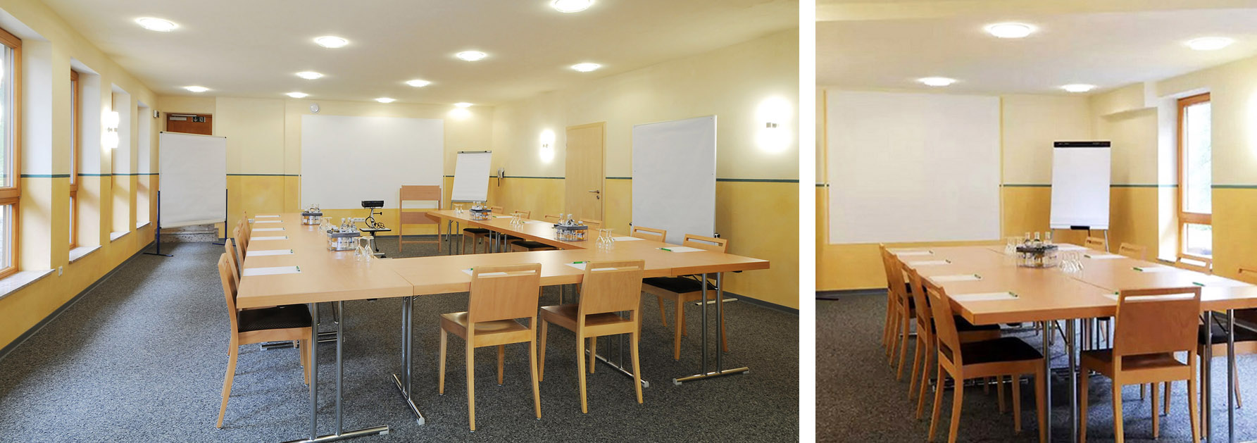 Our rooms are equipped with latest technology and may be darkened. Both rooms can be connected to one large room. In addition, a coffee machine is available for you in the cafeteria. Here you can provide yourself with coffee and tea. The costs for this are already included in every conference flat rate.